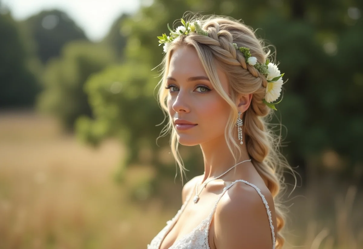 - Couronne de fleurs : Parfaite pour un mariage champêtre, la couronne de fleurs fraîches ou artificielles ajoute une dimension naturelle et romantique à votre look.