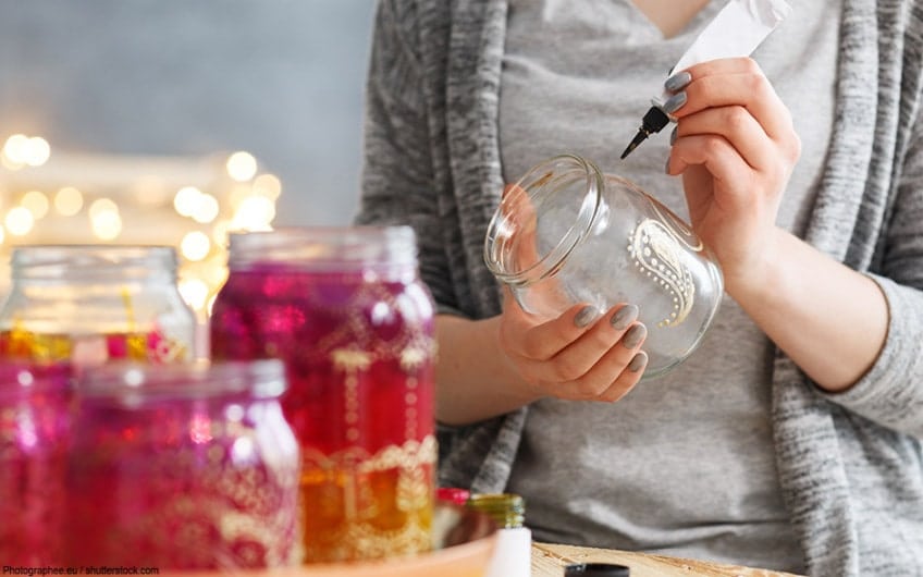 - Verre à décorer : bocaux, vases, verres à vin, bols… n’importe quelle surface lisse fonctionne
